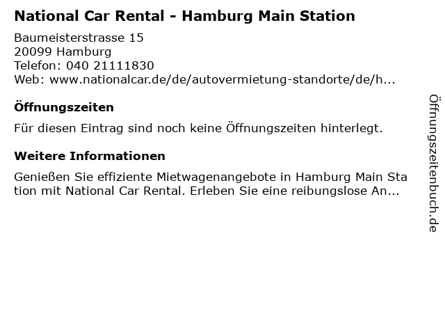 Branchen & Suchbegriffe zu National Car Rental - Hamburg Main Station:car, main, national, rental, station |