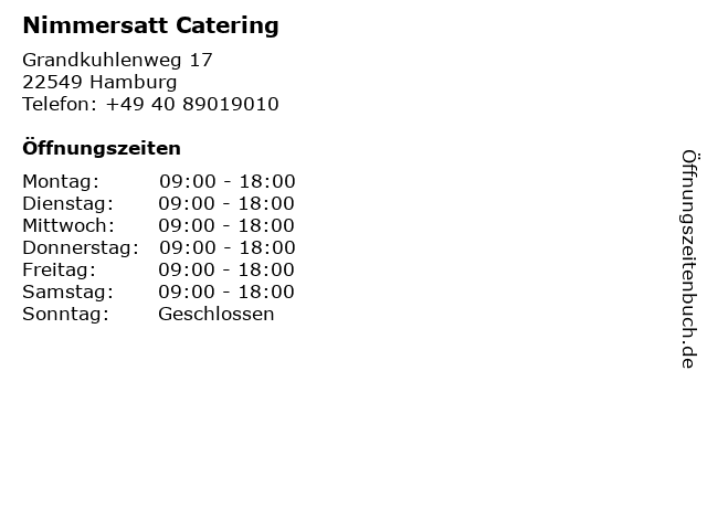| Öffnungszeiten Nimmersatt Catering in Hamburg anzeigen | |