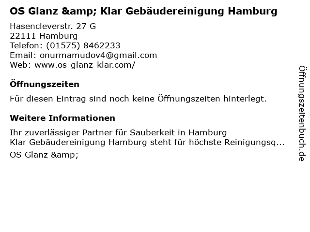 | OS Glanz & Klar Gebäudereinigung Hamburg anrufen | |