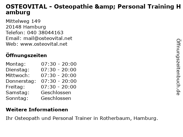 Branchen & Suchbegriffe zu OSTEOVITAL - Osteopathie & Personal Training Hamburg:ernährungsberatung, fitnessstudio, osteopathie, osteovital, personal, personal trainer, schmerztherapie, training |