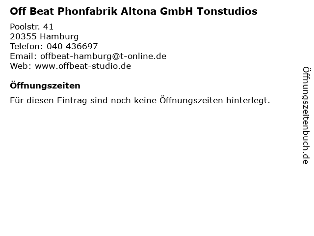 | Off Beat Phonfabrik Altona GmbH Tonstudios anrufen | |