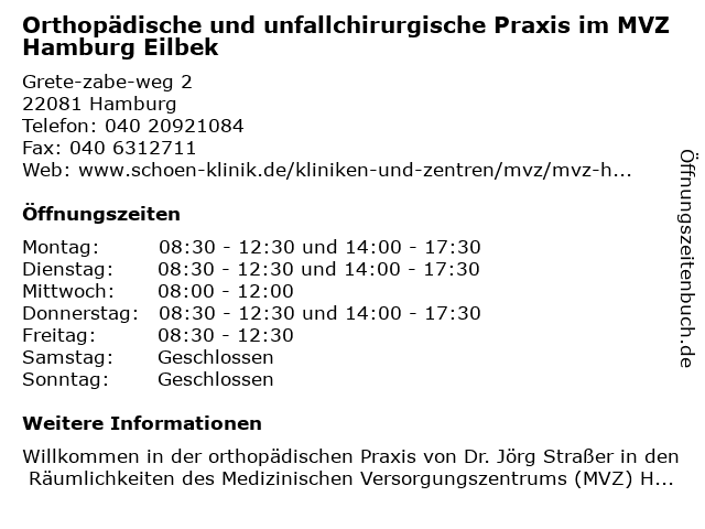 Branchen & Suchbegriffe zu Orthopädische und unfallchirurgische Praxis im MVZ Hamburg Eilbek:eilbek, mvz, orthopäden, orthopädische, praxis, unfallchirurgische |