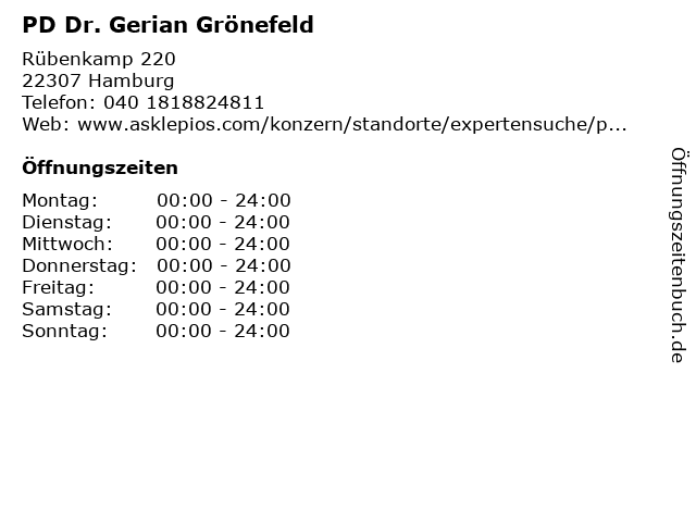 | Öffnungszeiten PD Dr. Gerian Grönefeld in Hamburg anzeigen | |