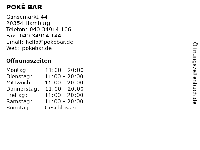 Öffnungszeiten POKÉ BAR in Hamburg anzeigen