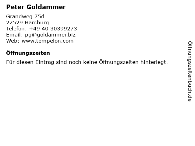 | Öffnungszeiten Peter Goldammer in Hamburg anzeigen | |
