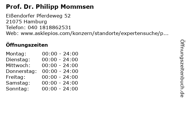 | Öffnungszeiten Prof. Dr. Philipp Mommsen in Hamburg anzeigen | |