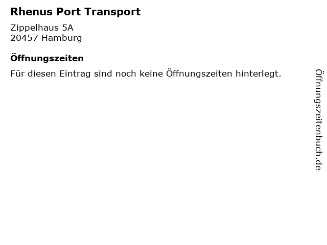 | Öffnungszeiten Rhenus Port Transport in Hamburg anzeigen | |