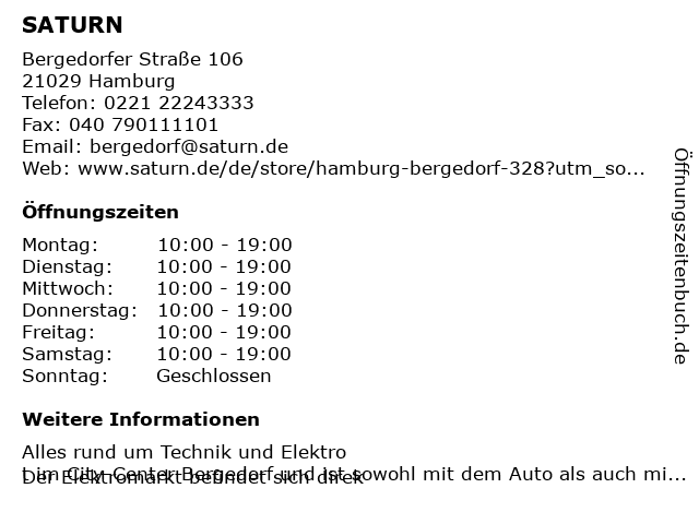 Der Elektromarkt befindet sich direkt im City-Center Bergedorf und ist sowohl mit dem Auto als auch mit dem öffentlichen Nahverkehr einfach und bequem zu erreichen.