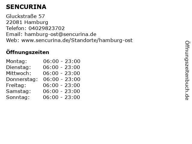 | Öffnungszeiten SENCURINA in Hamburg anzeigen | |
