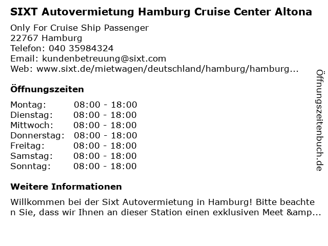 Branchen & Suchbegriffe zu SIXT Autovermietung Hamburg Cruise Center Altona:altona, autovermietung, center, cruise, kleinbusvermietung, sixt |