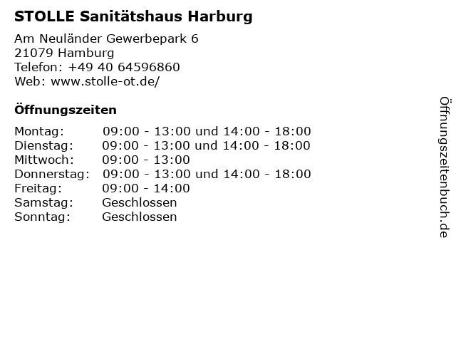 | Öffnungszeiten STOLLE Sanitätshaus Harburg in Hamburg anzeigen | |