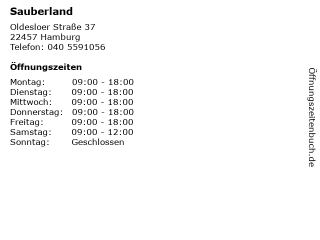 | Öffnungszeiten Sauberland in Hamburg anzeigen | |