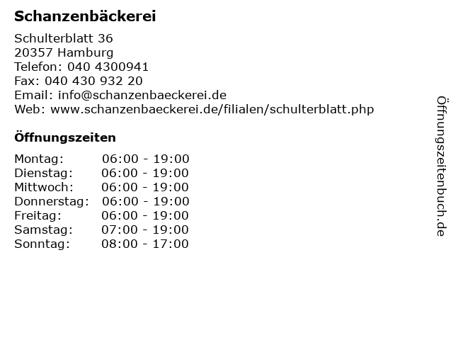 | Öffnungszeiten Schanzenbäckerei in Hamburg anzeigen | |