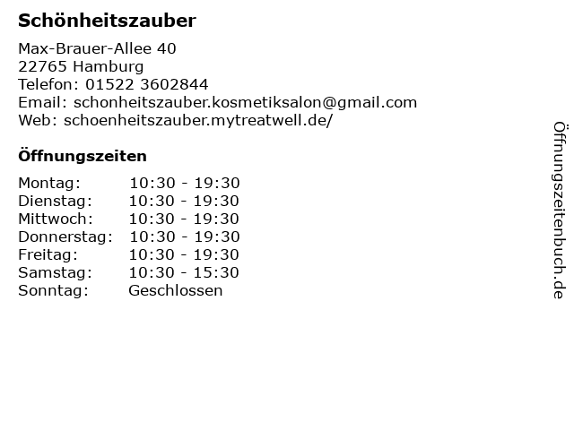 | Öffnungszeiten Schönheitszauber in Hamburg anzeigen | |