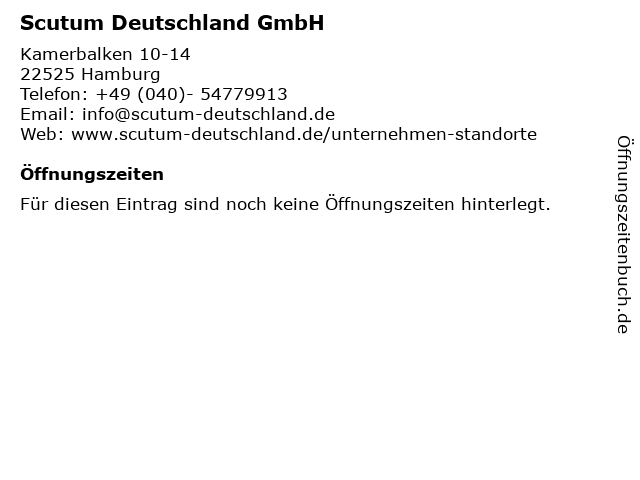 | Öffnungszeiten Scutum Deutschland GmbH in Hamburg anzeigen | |