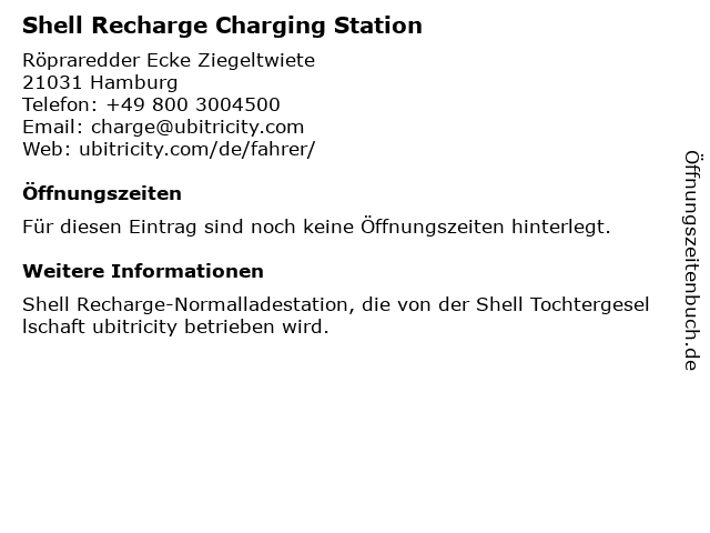 Shell Recharge Charging Station in Hamburg | Telefonnummer, Öffnungszeiten und Adresse