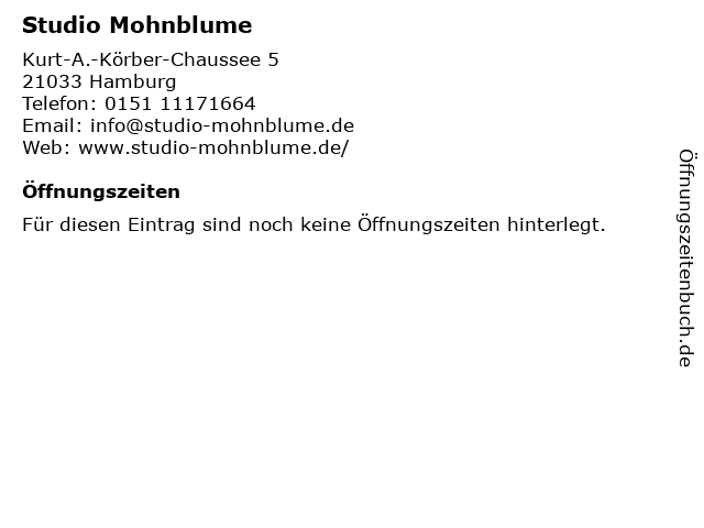 | Öffnungszeiten Studio Mohnblume in Hamburg anzeigen | |