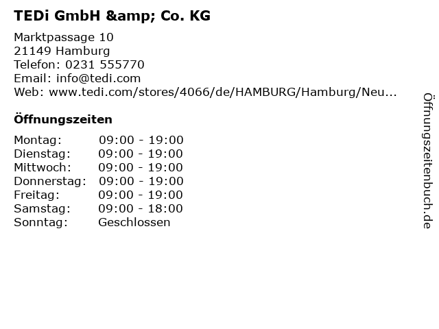 TEDi GmbH & Co. KG in Hamburg: Telefonnummer, Öffnungszeiten und Adresse