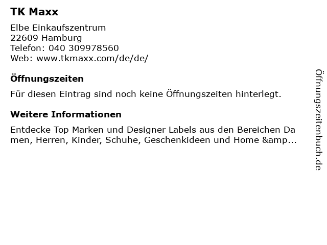 Öffnungszeiten TK Maxx in Hamburg anzeigen | |