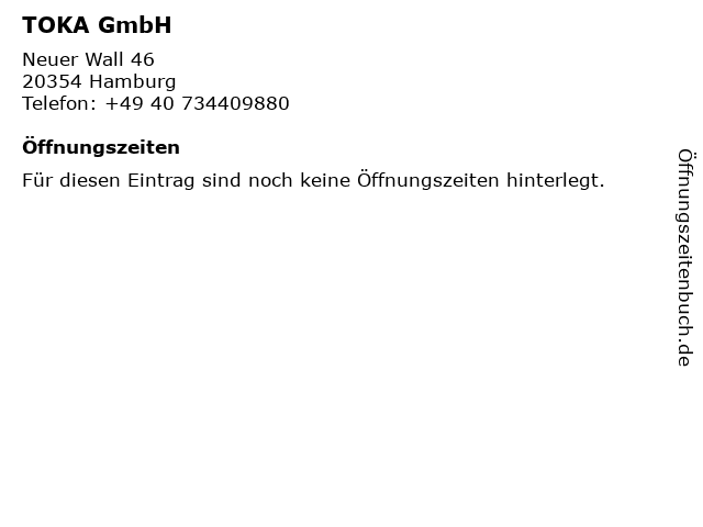 | Öffnungszeiten TOKA GmbH in Hamburg anzeigen | |