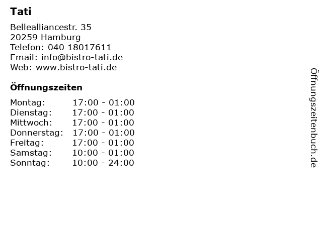 | Öffnungszeiten Tati in Hamburg anzeigen | |