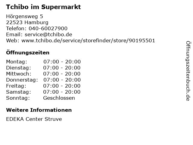 Öffnungszeiten Tchibo im Supermarkt in Hamburg anzeigen | |
