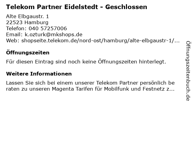Öffnungszeiten Telekom Partner Eidelstedt - Geschlossen