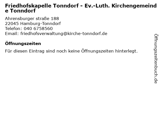 | Friedhofskapelle Tonndorf - Ev.-Luth. Kirchengemeinde Tonndorf anrufen | |