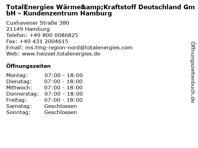 Branchen & Suchbegriffe zu TotalEnergies Wärme&Kraftstoff Deutschland GmbH - Kundenzentrum Hamburg:adblue, deutschland, diesel, heizöl, kundenzentrum, pellets, premiumheizöl, totalenergies, wärme&kraftstoff |