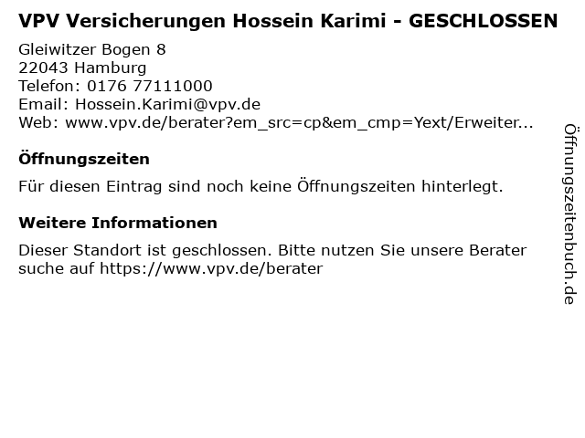 | VPV Versicherungen Hossein Karimi - GESCHLOSSEN anrufen | |