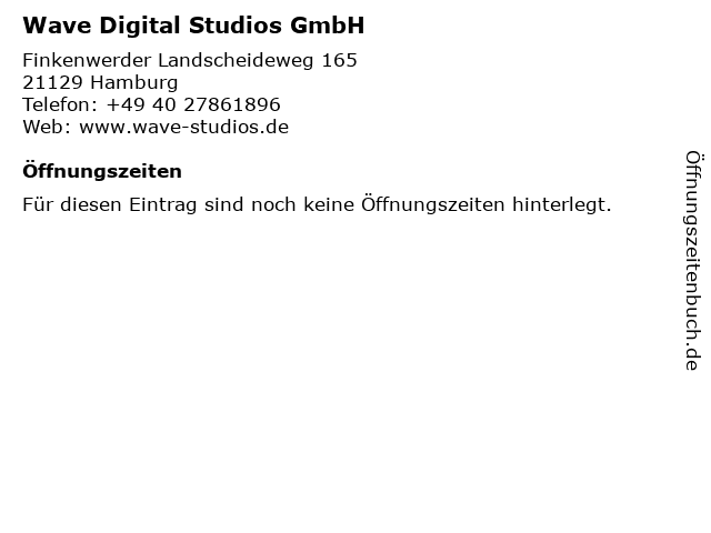 | Öffnungszeiten Wave Digital Studios GmbH in Hamburg anzeigen | |