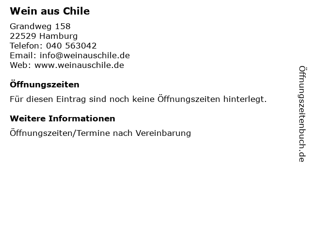 | Öffnungszeiten Wein aus Chile in Hamburg anzeigen | |