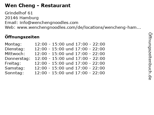 Öffnungszeiten Wen Cheng - Restaurant in Hamburg anzeigen | |