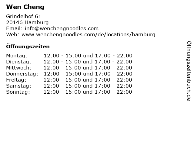 | Öffnungszeiten Wen Cheng in Hamburg anzeigen | |