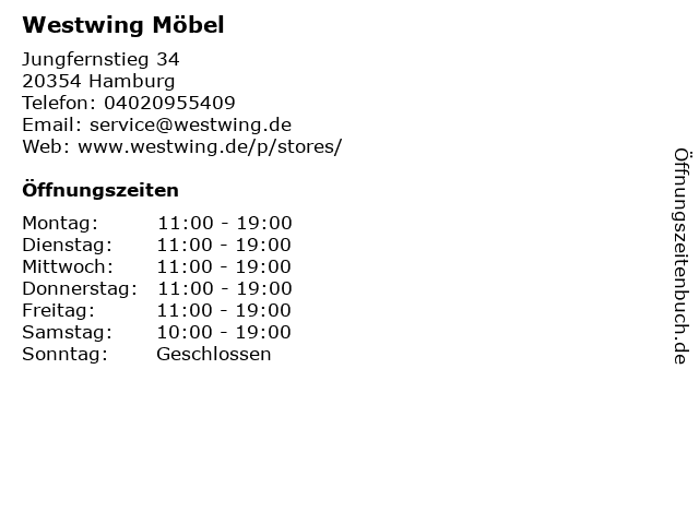 | Öffnungszeiten Westwing Möbel in Hamburg anzeigen | |