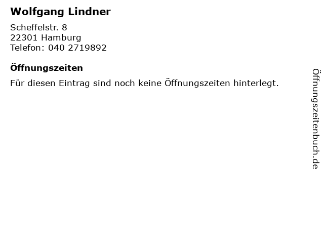 | Öffnungszeiten Wolfgang Lindner in Hamburg anzeigen | |