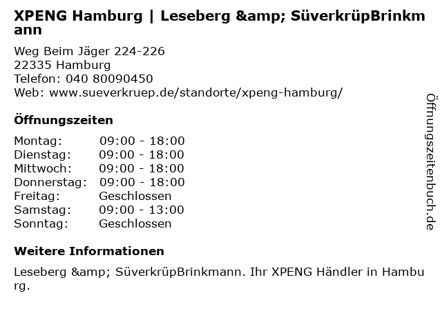 Öffnungszeiten XPENG Hamburg | Leseberg & SüverkrüpBrinkmann
