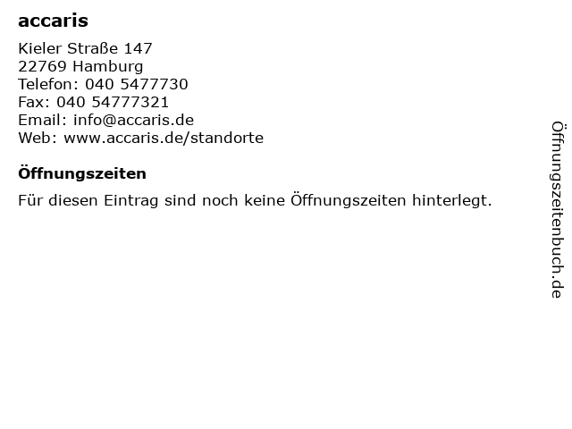 | Öffnungszeiten accaris in Hamburg anzeigen | |