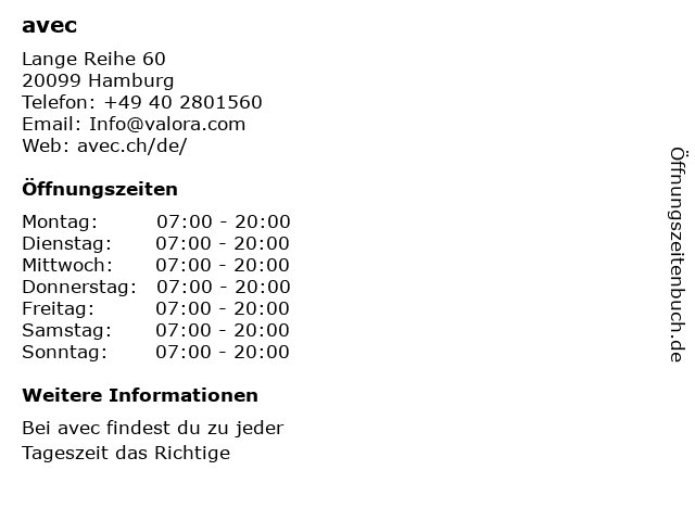 | Öffnungszeiten avec in Hamburg anzeigen | |
