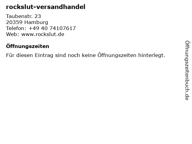 | Öffnungszeiten rockslut-versandhandel in Hamburg anzeigen | |