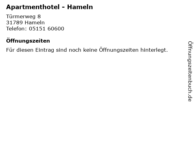 | Öffnungszeiten Apartmenthotel - Hameln in Hameln anzeigen | |
