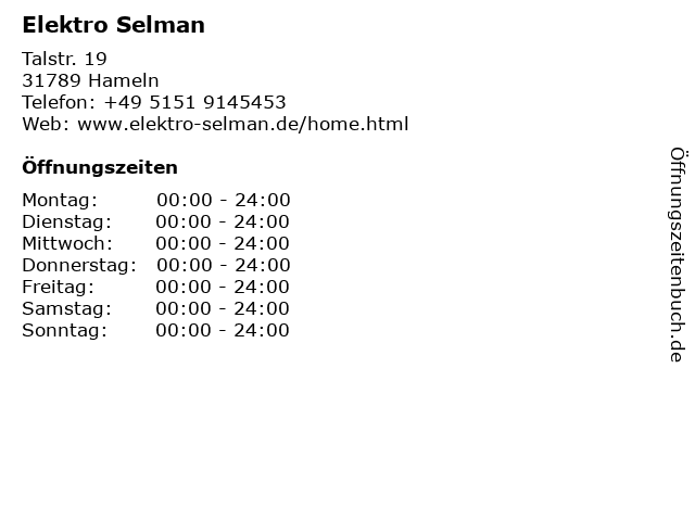 | Öffnungszeiten Elektro Selman in Hameln anzeigen | |