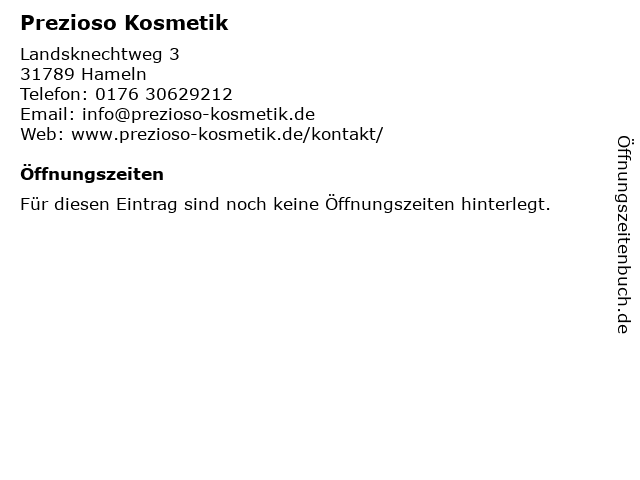 | Öffnungszeiten Prezioso Kosmetik in Hameln anzeigen | |