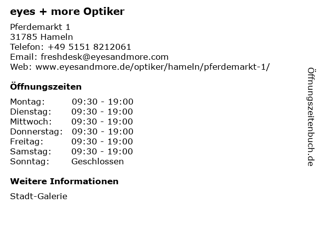 | Öffnungszeiten eyes + more Optiker in Hameln anzeigen | |