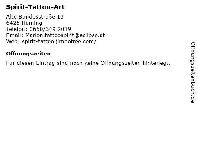 | Öffnungszeiten Spirit-Tattoo-Art in Haming anzeigen | |