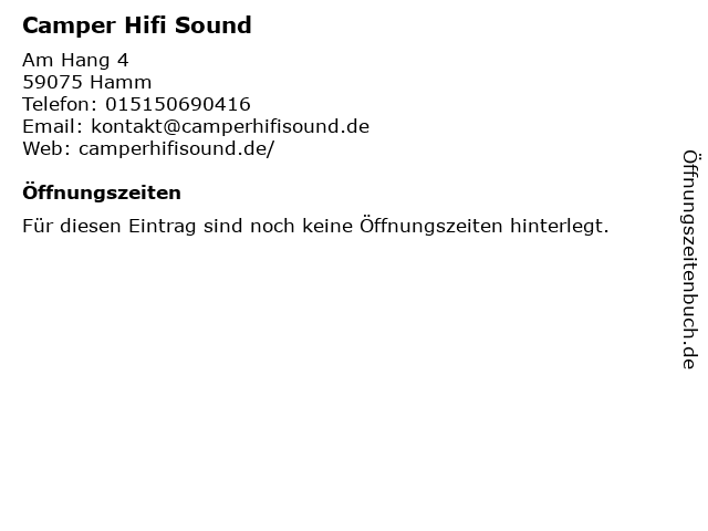 | Öffnungszeiten Camper Hifi Sound in Hamm anzeigen | |