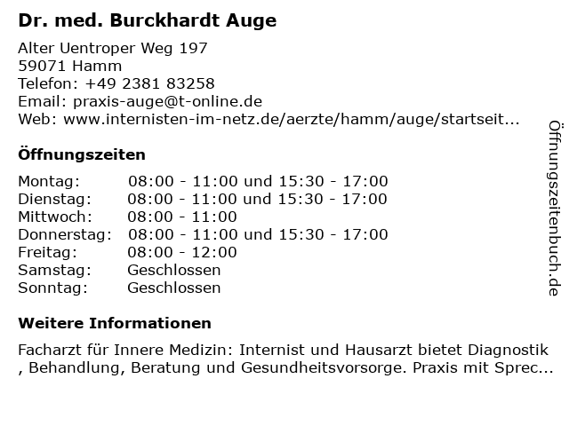 | Adresse Dr. med. Burckhardt Auge in Hamm anzeigen |