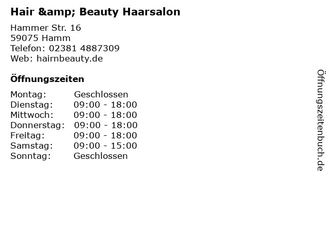 | Adresse Hair & Beauty Haarsalon in Hamm anzeigen |