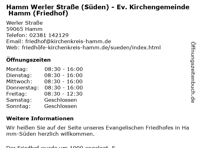 Branchen & Suchbegriffe zu Hamm Werler Straße (Süden) - Ev. Kirchengemeinde Hamm (Friedhof):ev., friedhof, kirchengemeinde, straße, süden, werler |