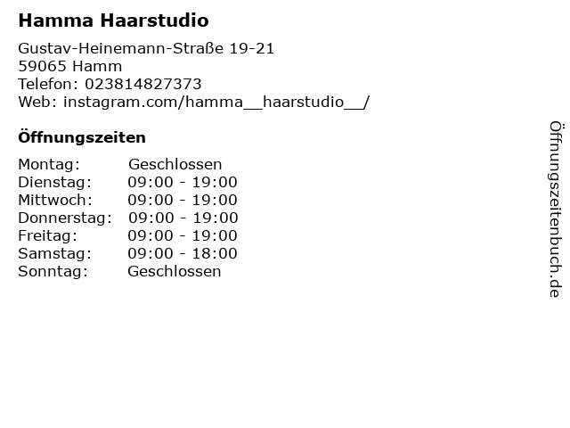 | Öffnungszeiten Hamma Haarstudio in Hamm anzeigen | |